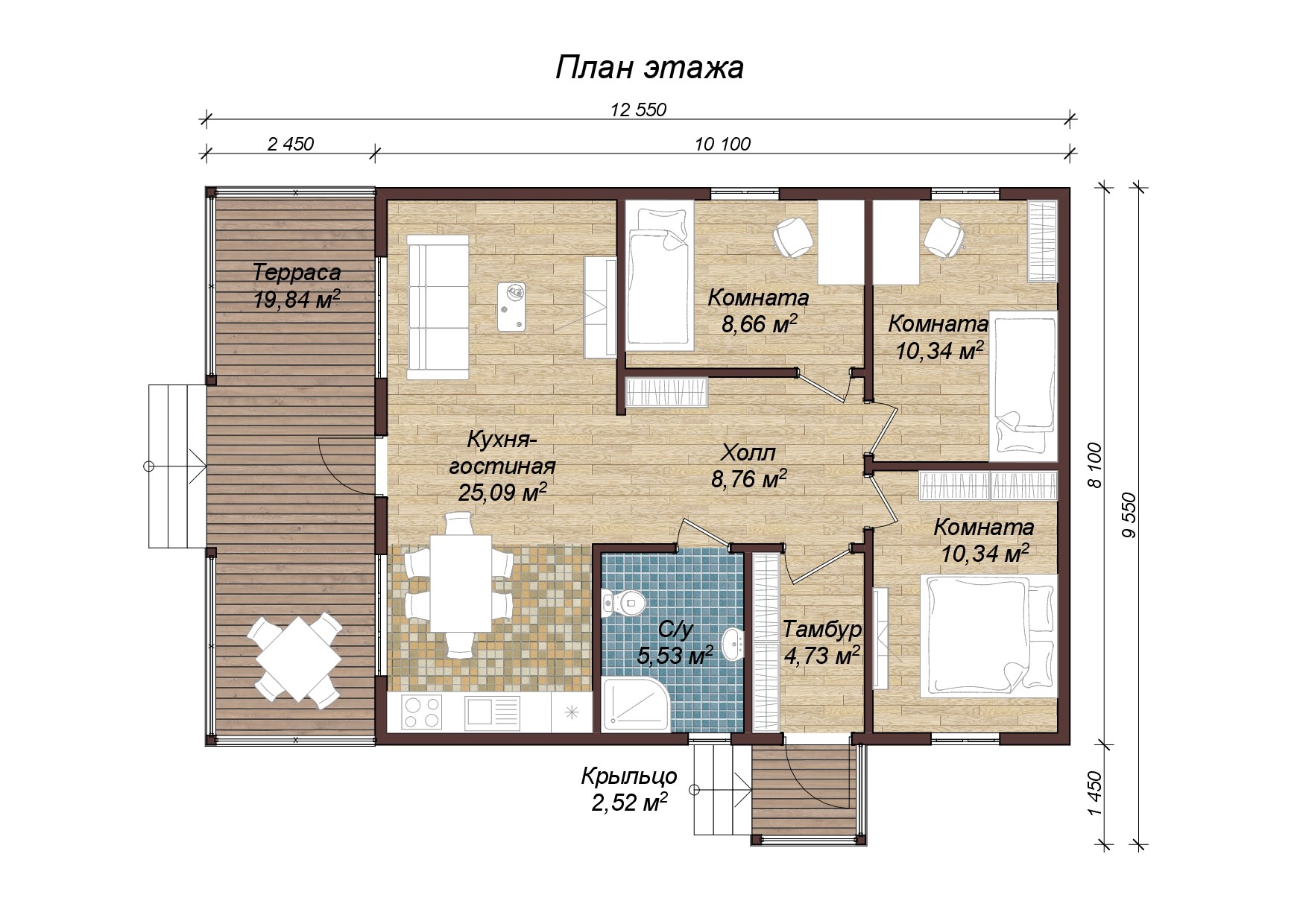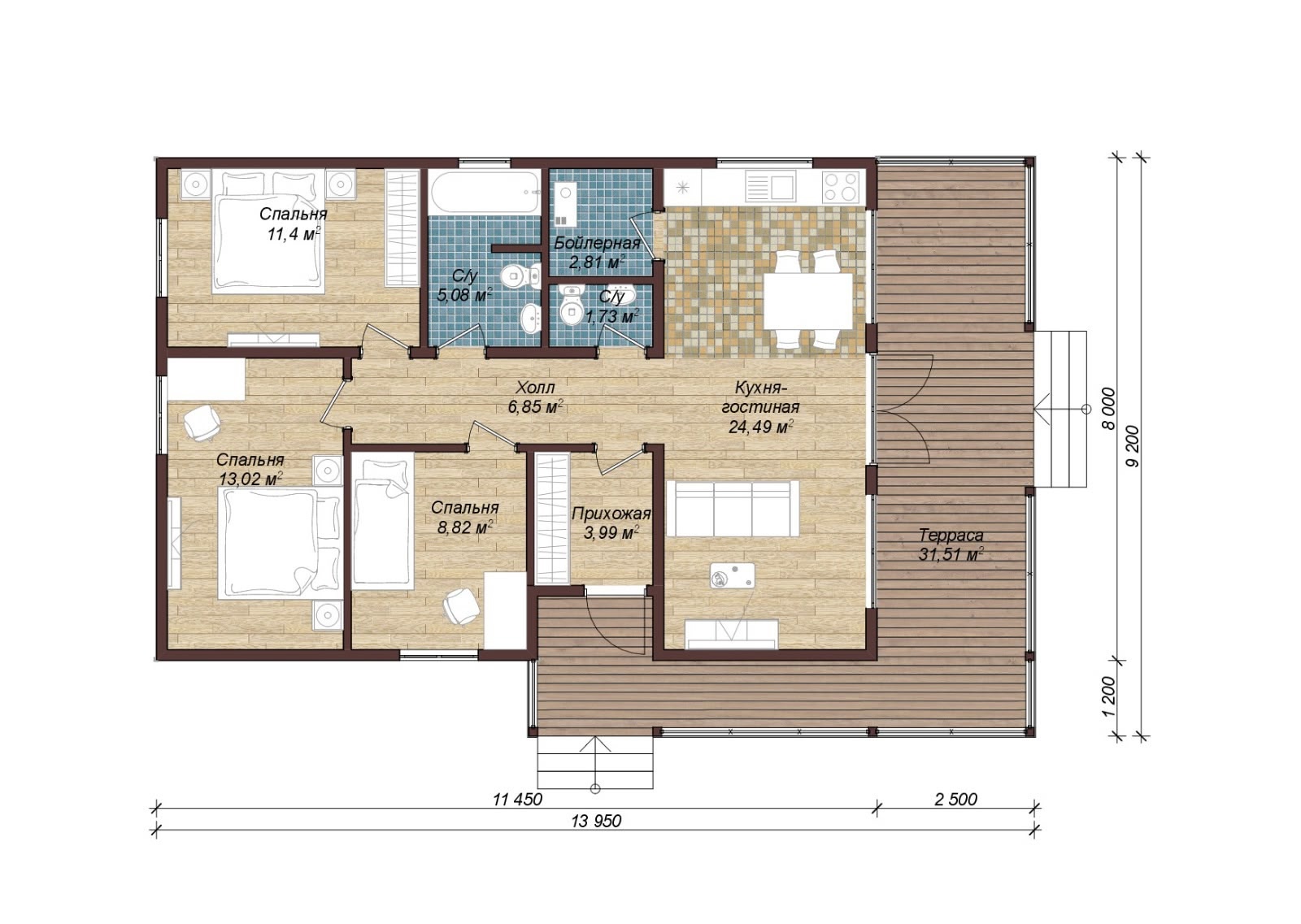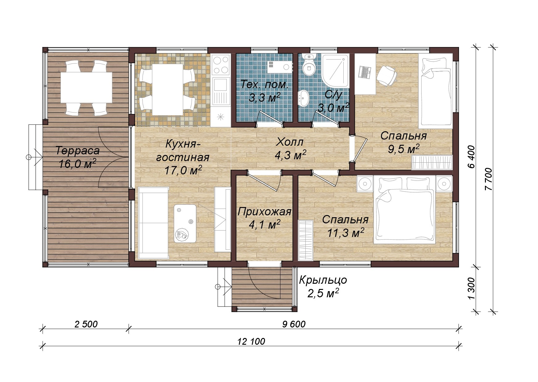 Общая площадь: 96 м2