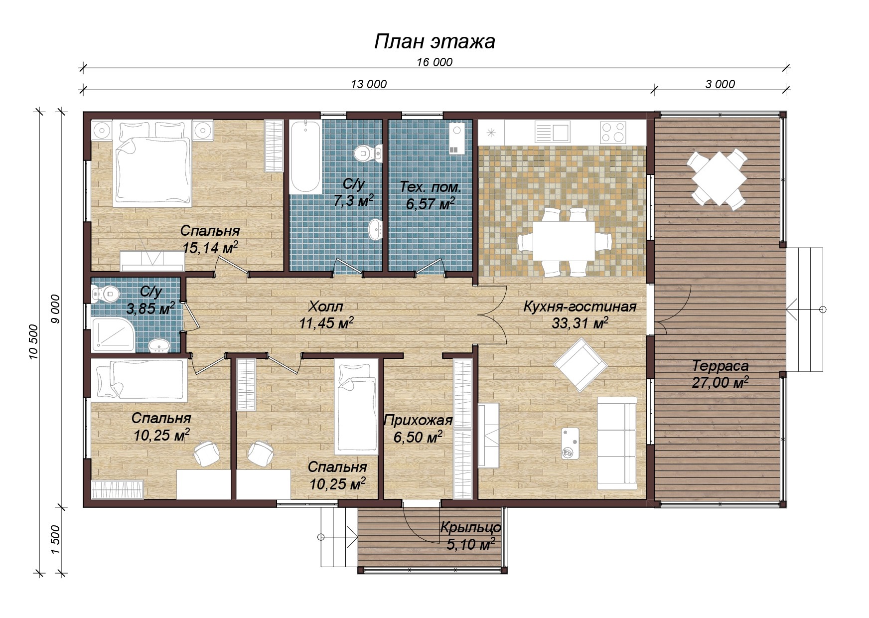 Размер: 16 х 10,5 м