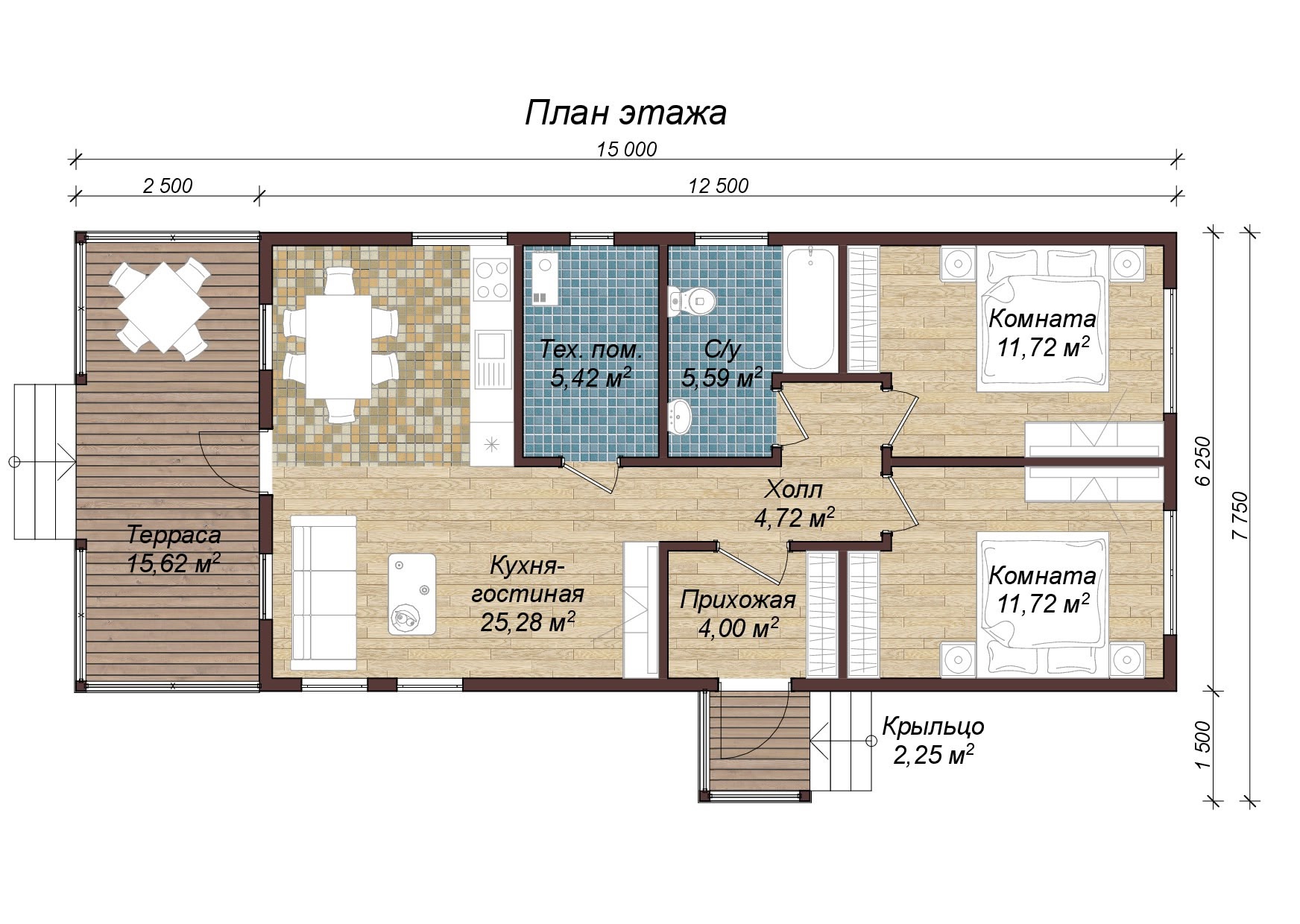 Размер: 15х 7,7 м