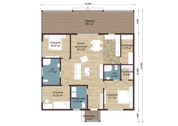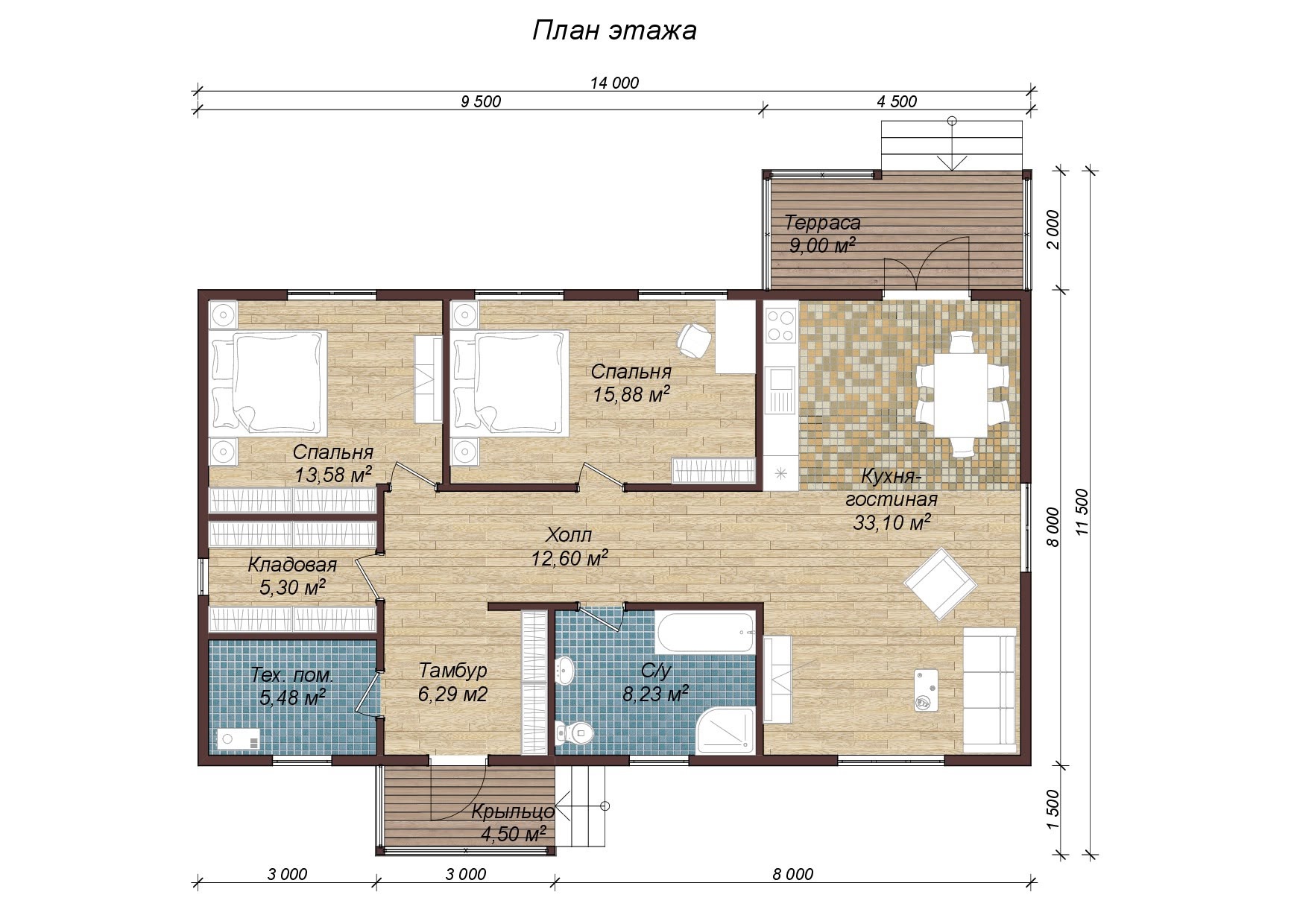 Размер: 14 х 11,5 м
