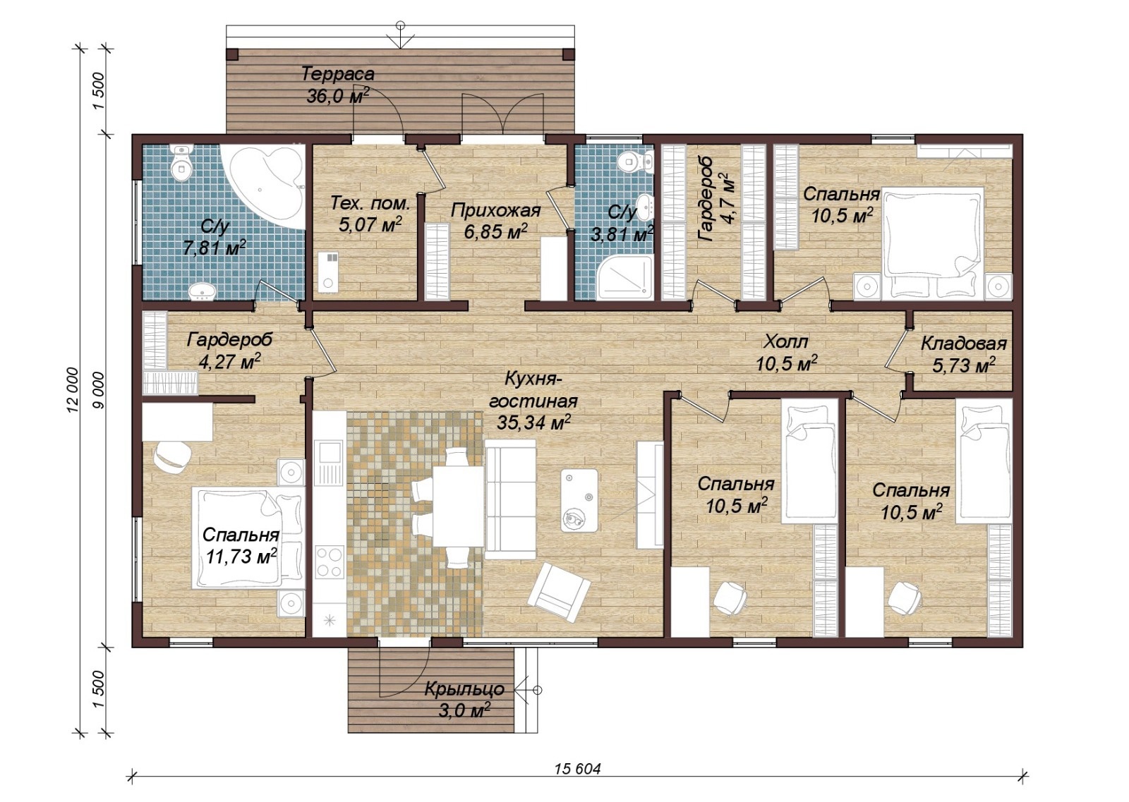 Общая площадь: 103,5 м2