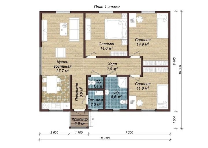 Размер: 11,5 х 10,3 м
