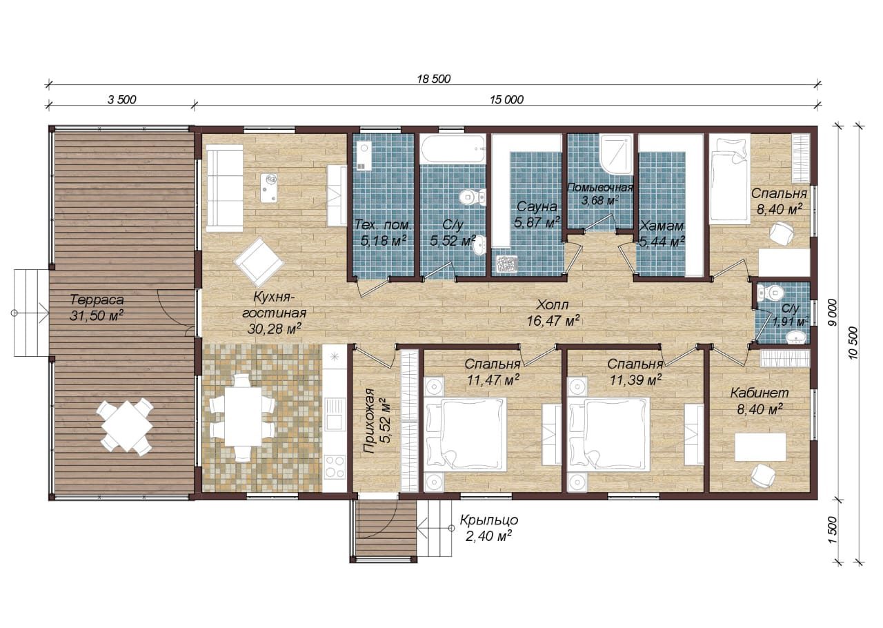Размер: 18,5 х 10,5 м